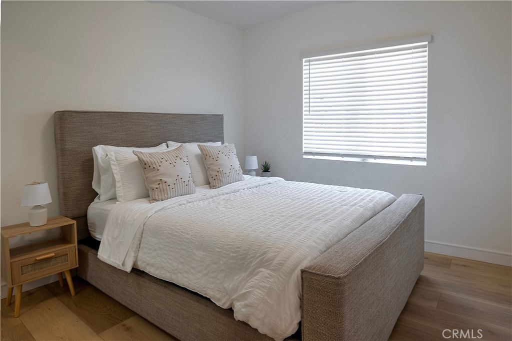 Beautifully updated with sleek, contemporary finishes, this 4-bedroom, 2-bathroom residence is filled with natural light and features an open floor plan with a spacious living room and soaring vaulted ceilings. The stylish kitchen boasts brand-new cabinetry, quartz countertops, and high-end stainless steel appliances. Luxury vinyl plank (LVT) flooring, designed to mimic the warmth of real wood, extends throughout the entire home, offering both durability and style. The primary suite features a spa-like bathroom with a double-sink vanity and a huge walk-in closet for ample storage.